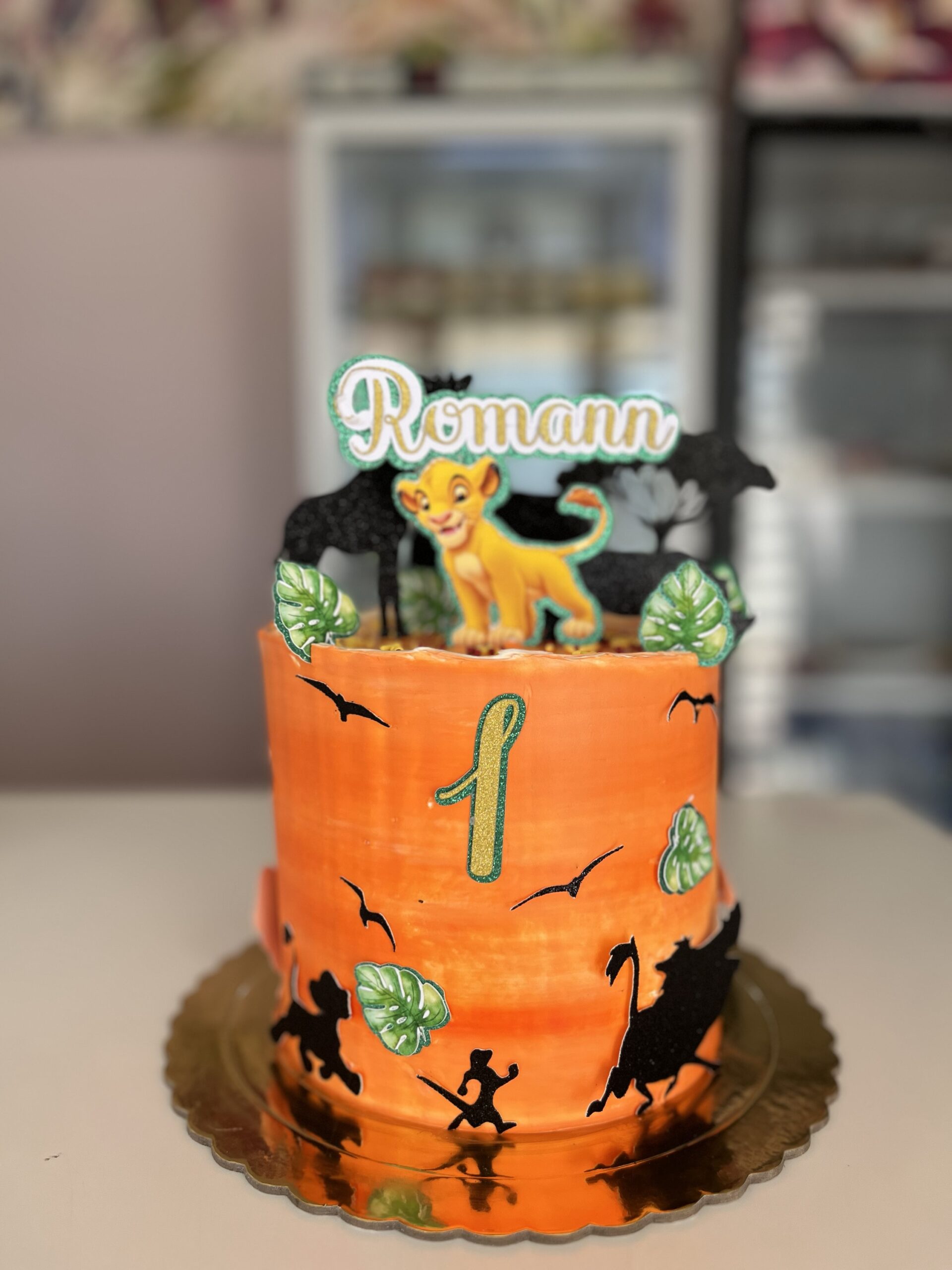 Gâteau Le Roi Lion sans pâte à sucre, recouvert d’une délicieuse crème au beurre légère à la vanille.