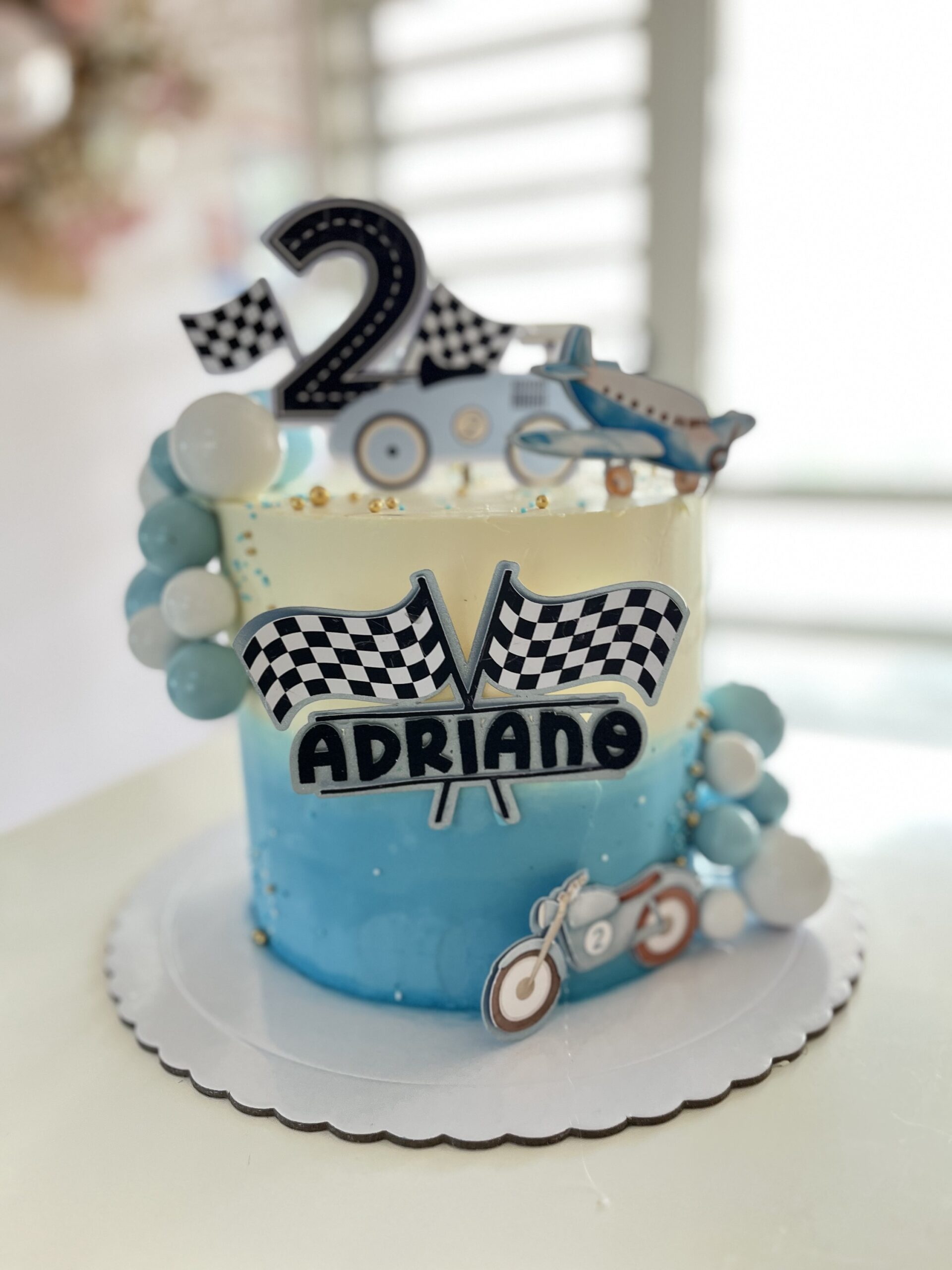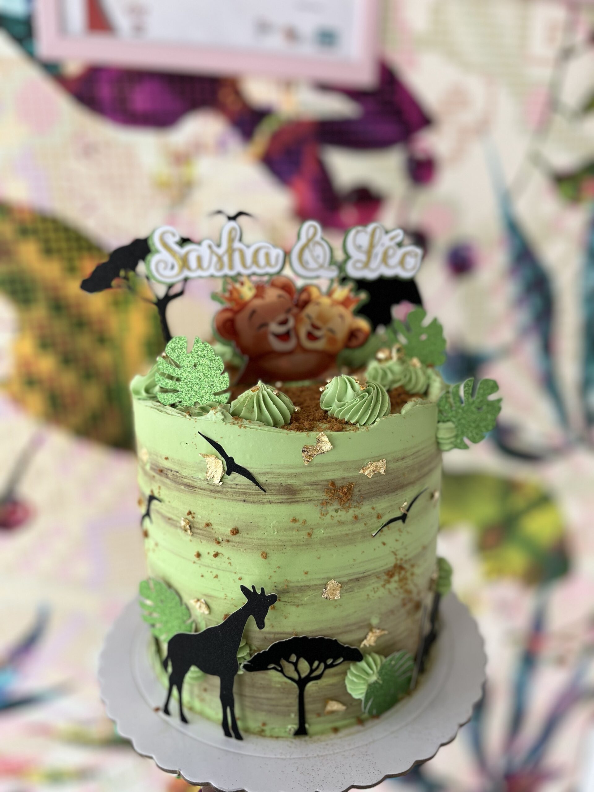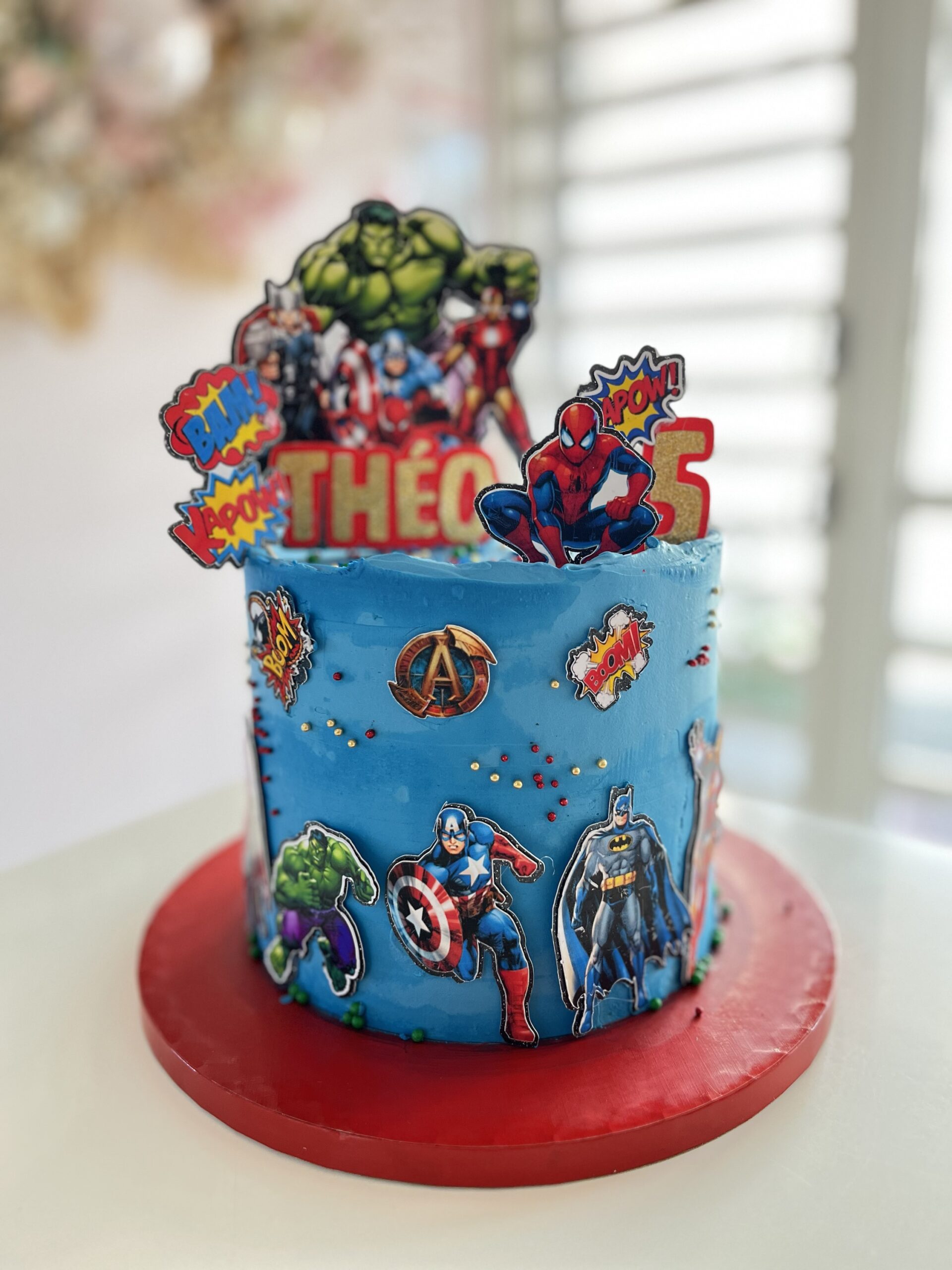 Gâteau thème au choix sans pâte à sucre, recouvert d’une délicieuse crème au beurre légère à la vanille.
